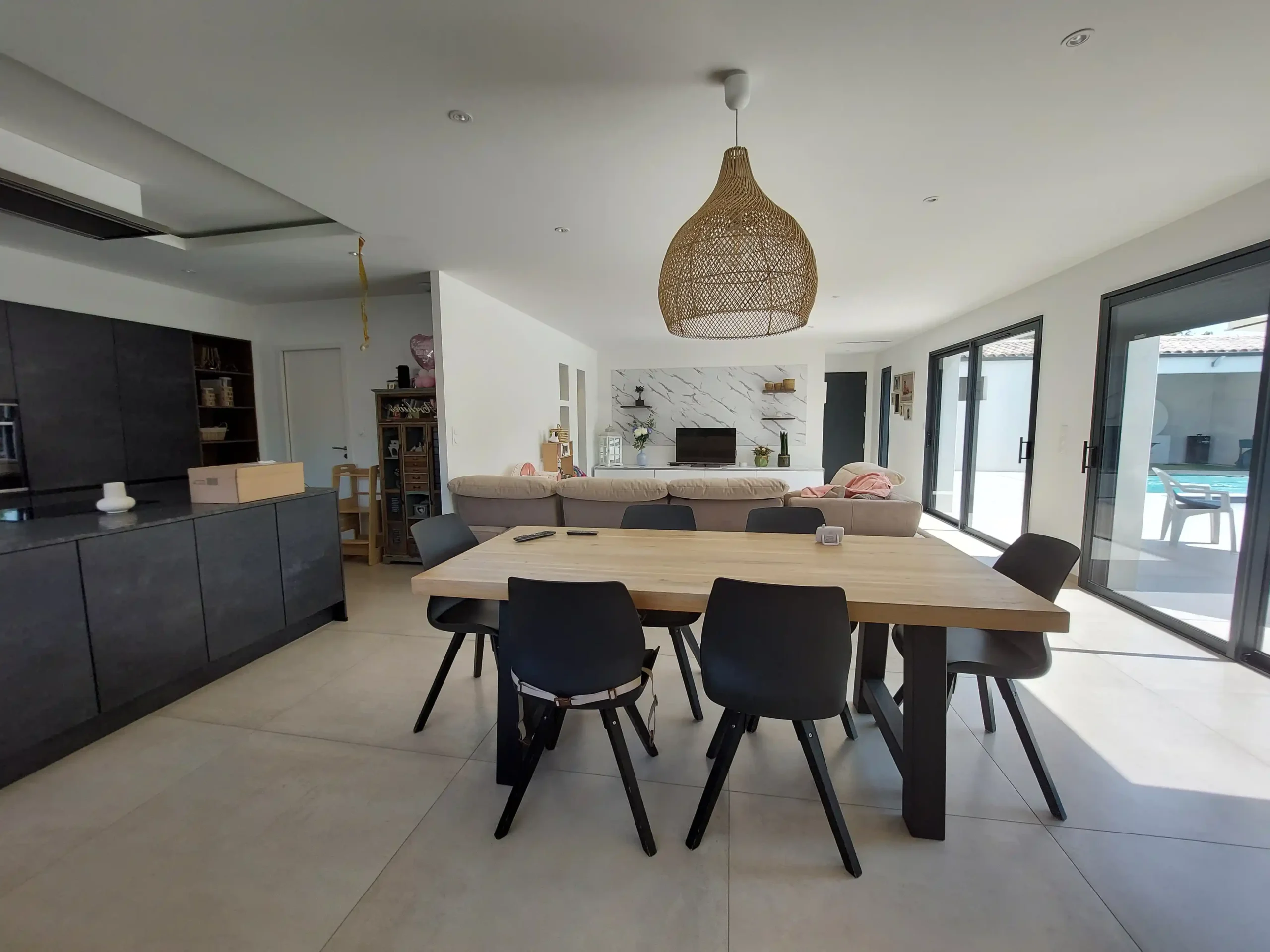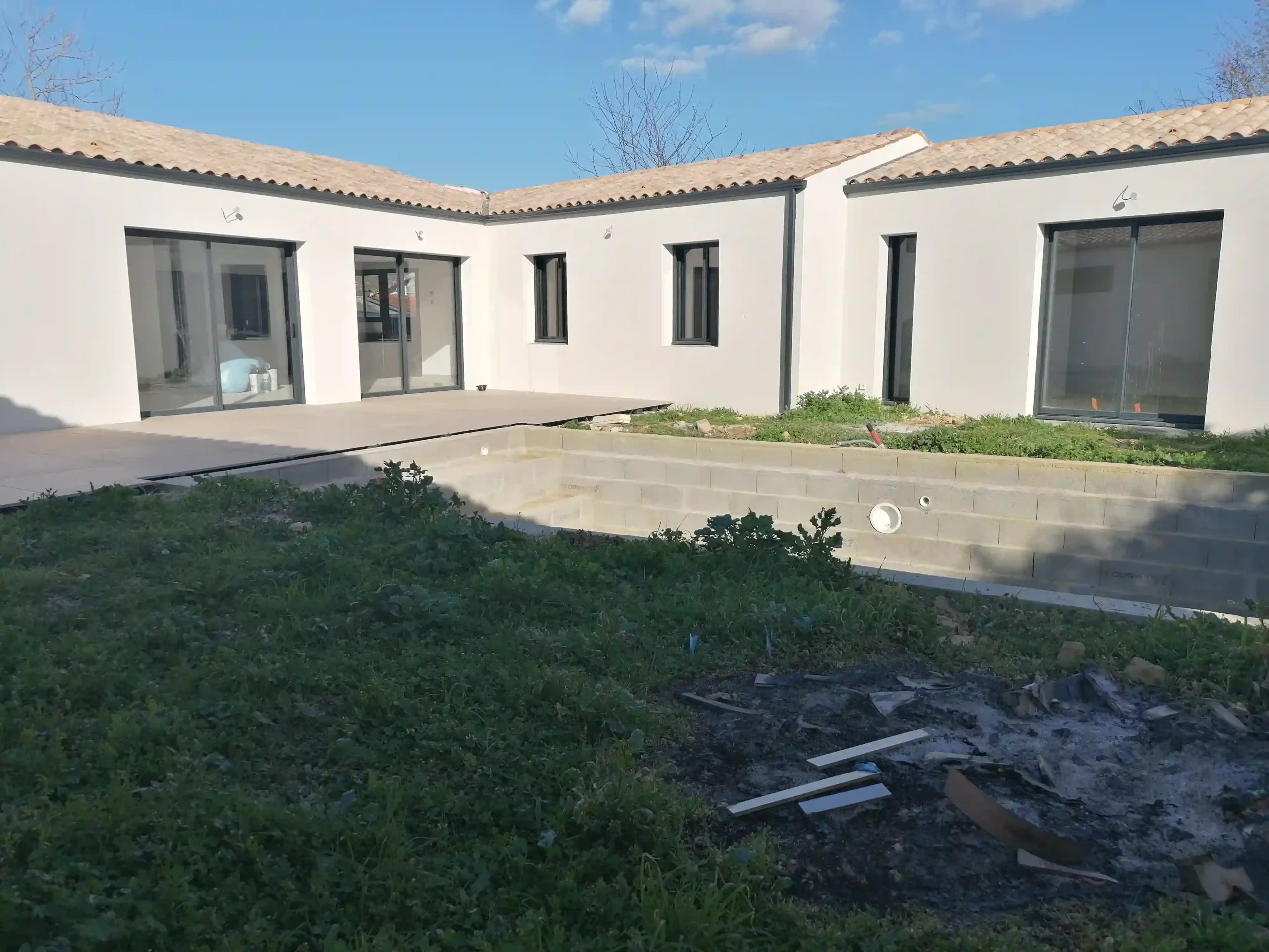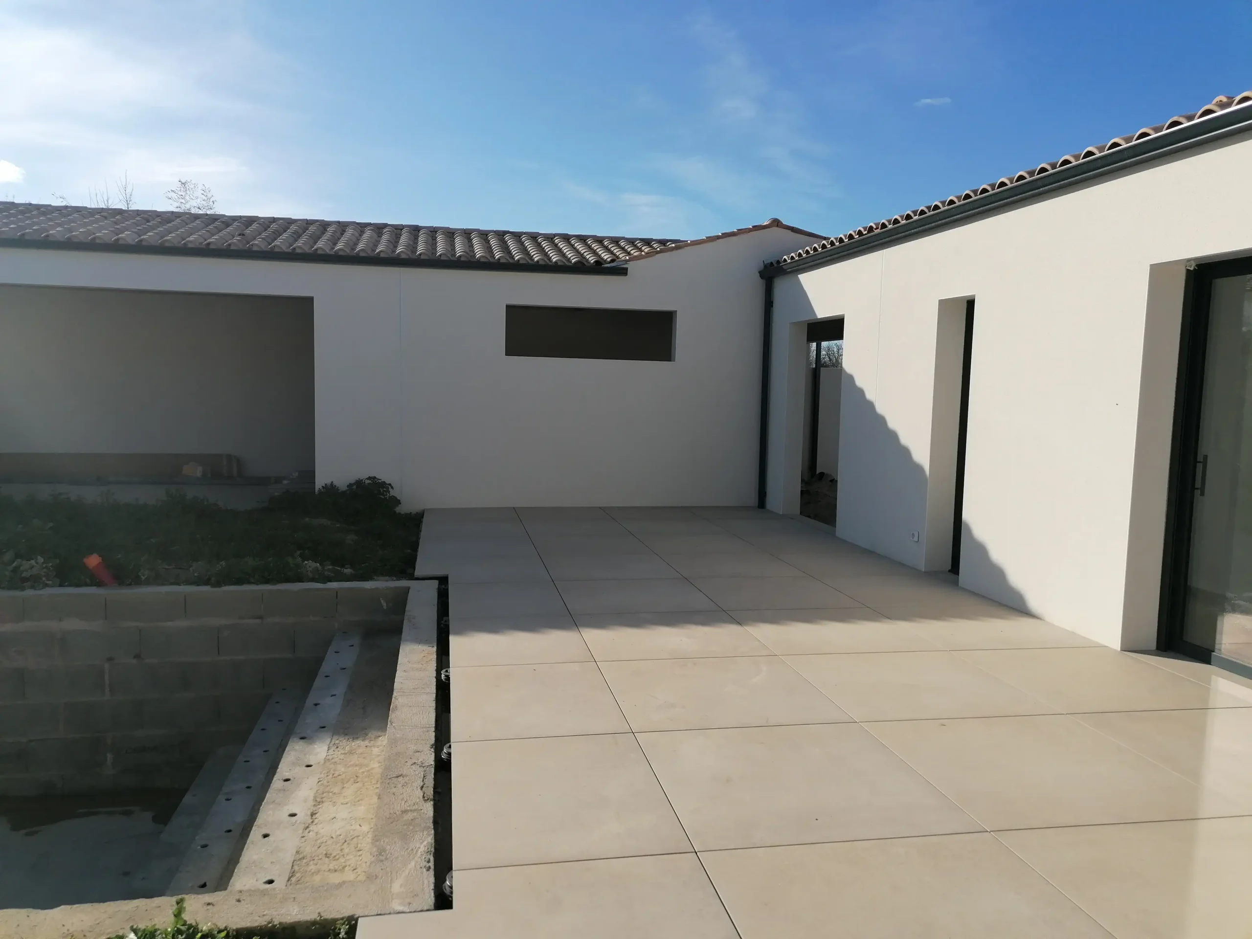 Cette construction d’une maison à Bourgneuf incarne une approche contemporaine du confort, conçue pour offrir des espaces lumineux et fonctionnels. La pièce de vie centrale, largement ouverte sur l’extérieur grâce aux baies vitrées, crée une véritable continuité entre le séjour, la terrasse et l’espace piscine, renforçant la sensation d’espace et de liberté. À l’intérieur, les matériaux sobres, les teintes naturelles et les rangements intégrés soulignent une ambiance moderne et chaleureuse, pensée pour le quotidien. À l’extérieur, l’organisation des volumes et les aménagements paysagers structurent l’ensemble et confèrent au projet une identité élégante et durable.