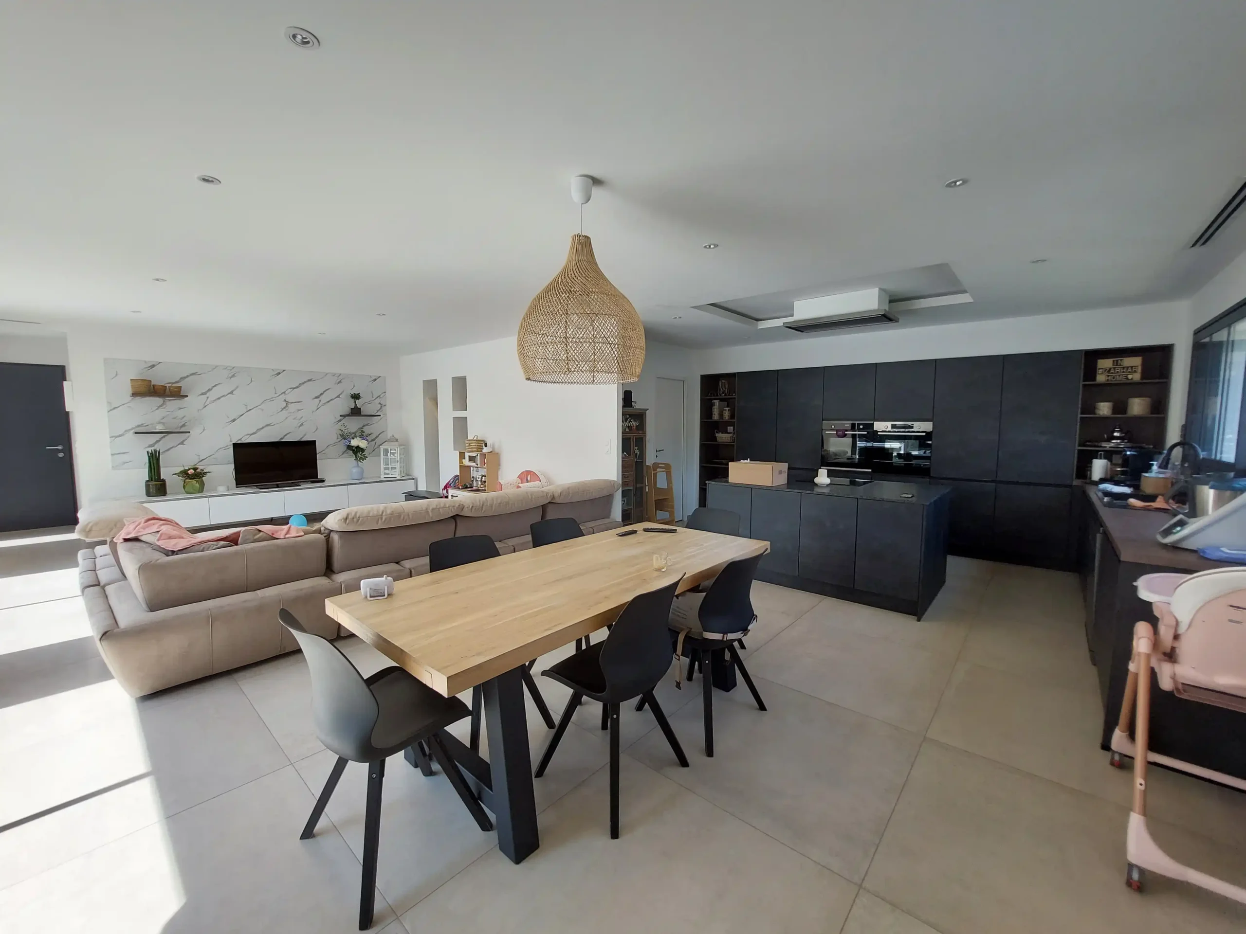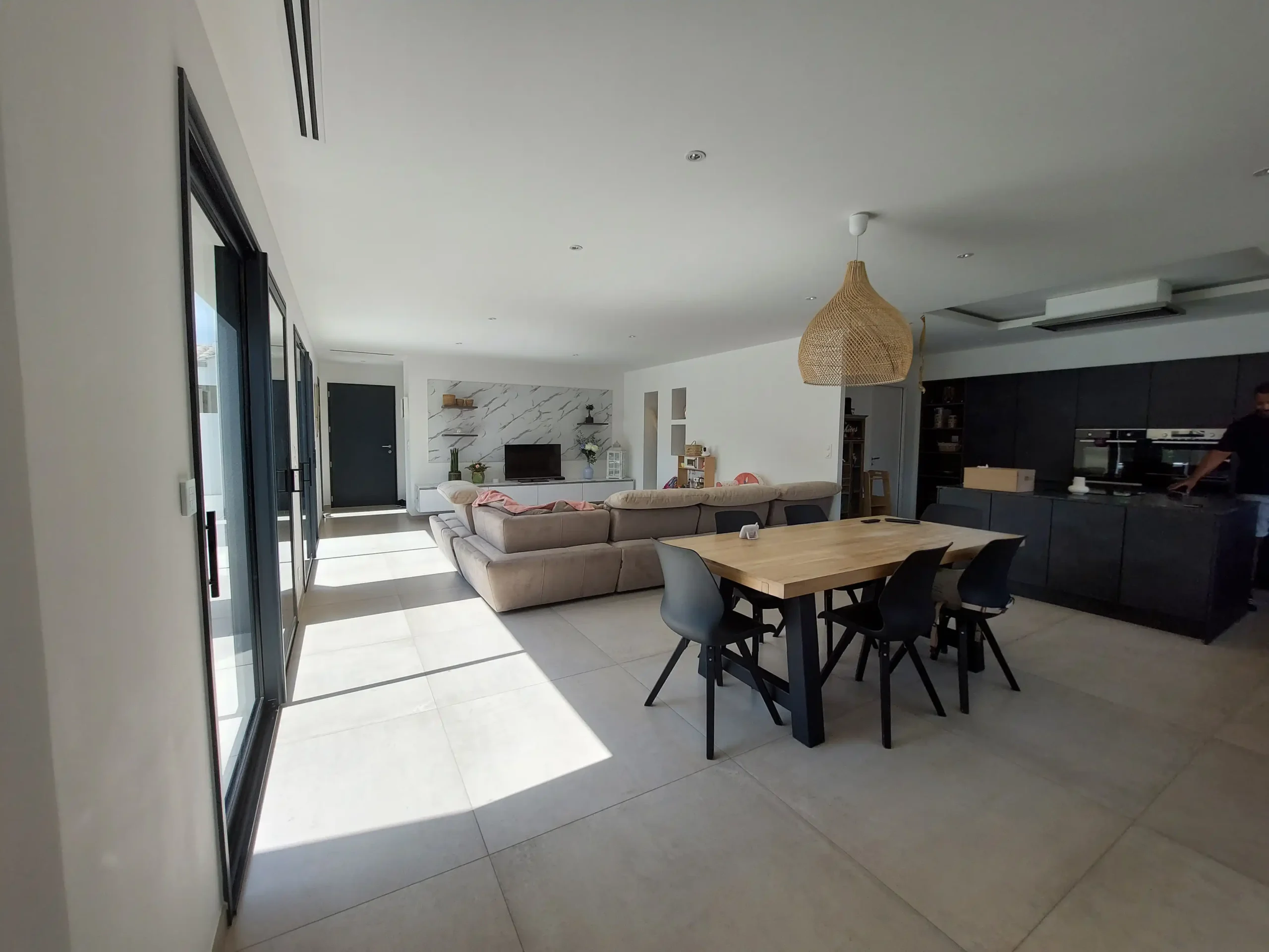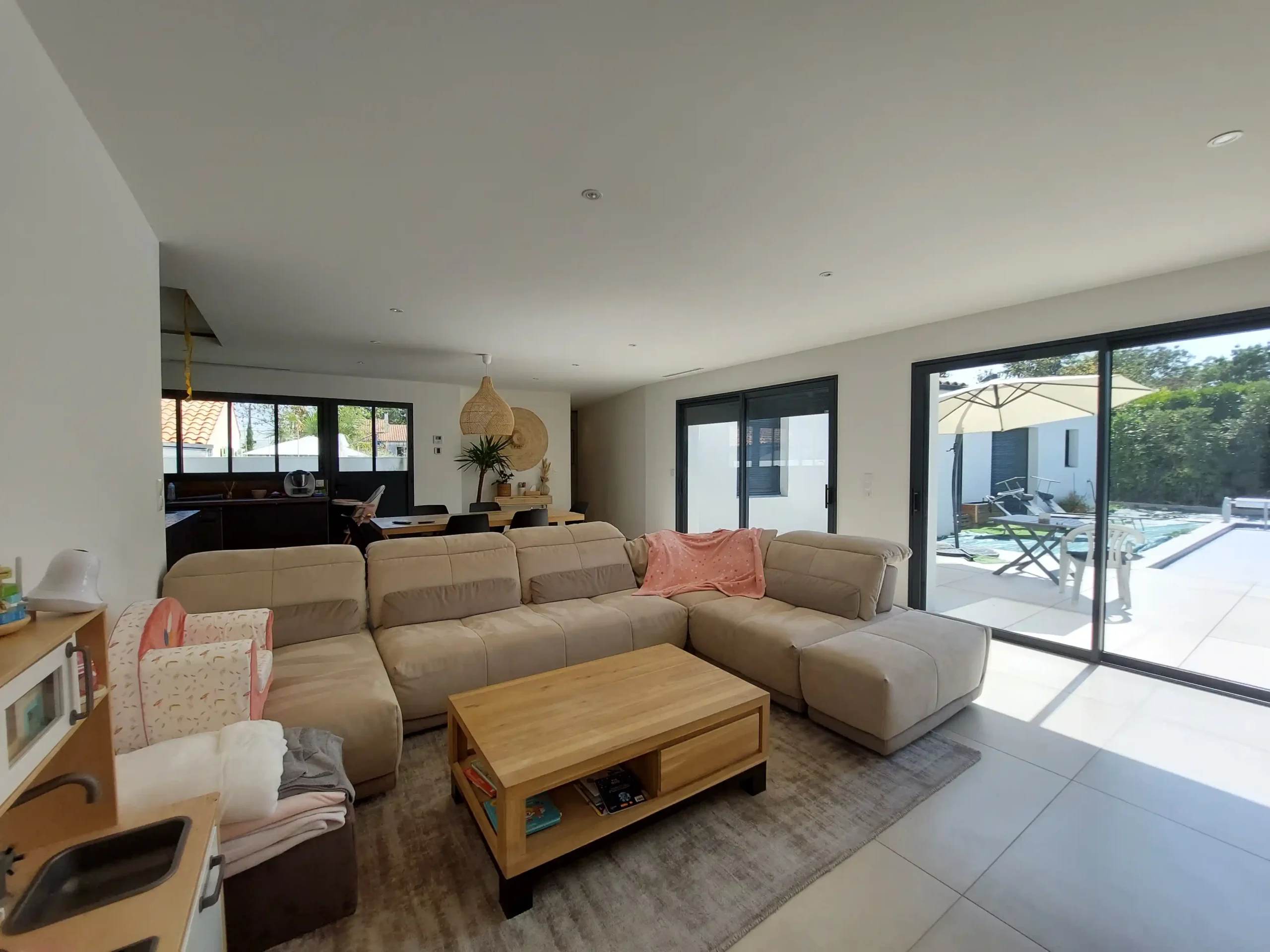 Cette construction d’une maison à Bourgneuf incarne une approche contemporaine du confort, conçue pour offrir des espaces lumineux et fonctionnels. La pièce de vie centrale, largement ouverte sur l’extérieur grâce aux baies vitrées, crée une véritable continuité entre le séjour, la terrasse et l’espace piscine, renforçant la sensation d’espace et de liberté. À l’intérieur, les matériaux sobres, les teintes naturelles et les rangements intégrés soulignent une ambiance moderne et chaleureuse, pensée pour le quotidien. À l’extérieur, l’organisation des volumes et les aménagements paysagers structurent l’ensemble et confèrent au projet une identité élégante et durable.