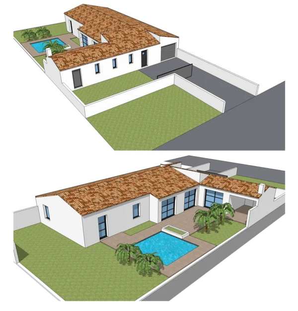 Ce projet de construction de maison à Clavette 17 se distingue par sa signature architecturale : une maison contemporaine, élégante et baignée de lumière, qui s’intègre harmonieusement dans son environnement. Le soin apporté aux détails esthétiques — choix des menuiseries, proportions des volumes, jeux d’ouverture — en fait un exemple remarquable d’équilibre entre modernité et authenticité.