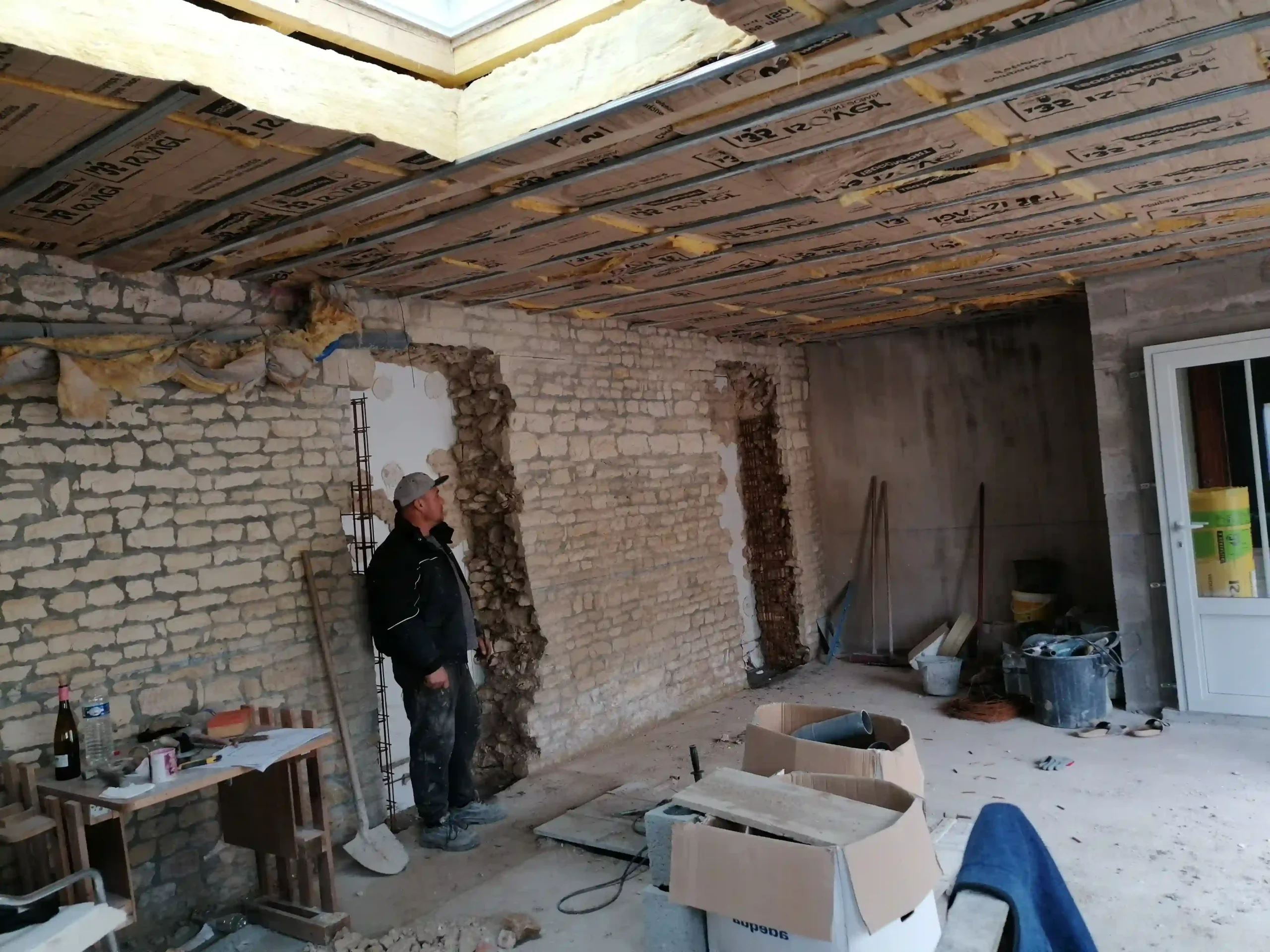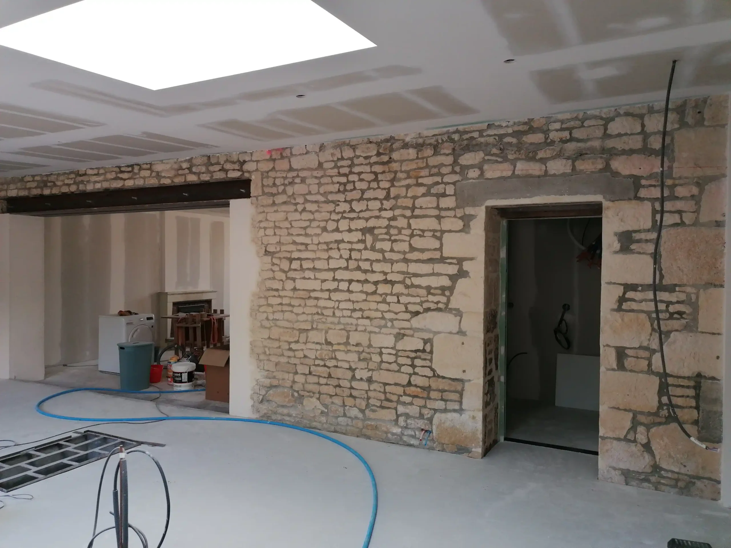 Cette extension à La Jarrie illustre une transformation d’envergure mêlant savoir-faire traditionnel et approche contemporaine. Le bâti existant a été totalement repensé : ouverture de murs porteurs, rénovation des pierres apparentes, renforcement de la structure et intégration d’une construction neuve permettant d’agrandir considérablement les espaces de vie. Cette intervention a offert une nouvelle lecture architecturale à la maison, désormais plus lumineuse, fonctionnelle et tournée vers l’extérieur. L’escalier sur-mesure et les finitions soignées soulignent la qualité du travail réalisé, pour un résultat harmonieux qui valorise le charme d’origine tout en répondant aux usages actuels.