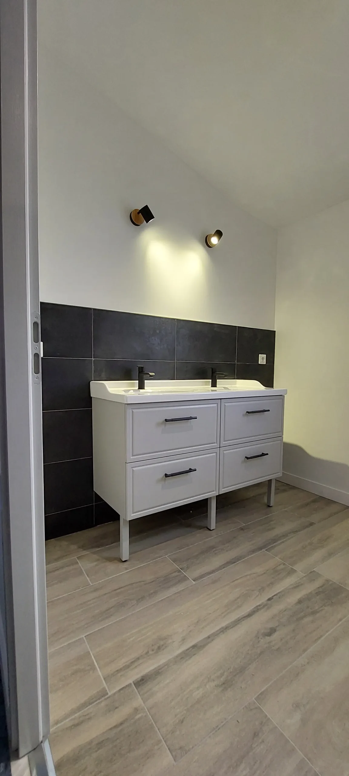 À Lagord, cette maison a profité d’une surélévation associée à une rénovation complète des espaces intérieurs. L’intervention a permis de repenser les volumes et d’ajouter de nouveaux mètres carrés habitables, sans dénaturer l’architecture existante. L’escalier métallique sur-mesure devient l’axe central du projet et relie harmonieusement les niveaux. Les salles de bains ont été entièrement repensées avec des douches italiennes, un mobilier contemporain et des matériaux durables. Les revêtements de sol, soigneusement sélectionnés, apportent une touche chaleureuse et moderne. Cette transformation offre désormais un cadre de vie lumineux, fonctionnel et pensé dans le moindre détail. Une rénovation ambitieuse qui redonne une nouvelle identité à cette maison familiale.